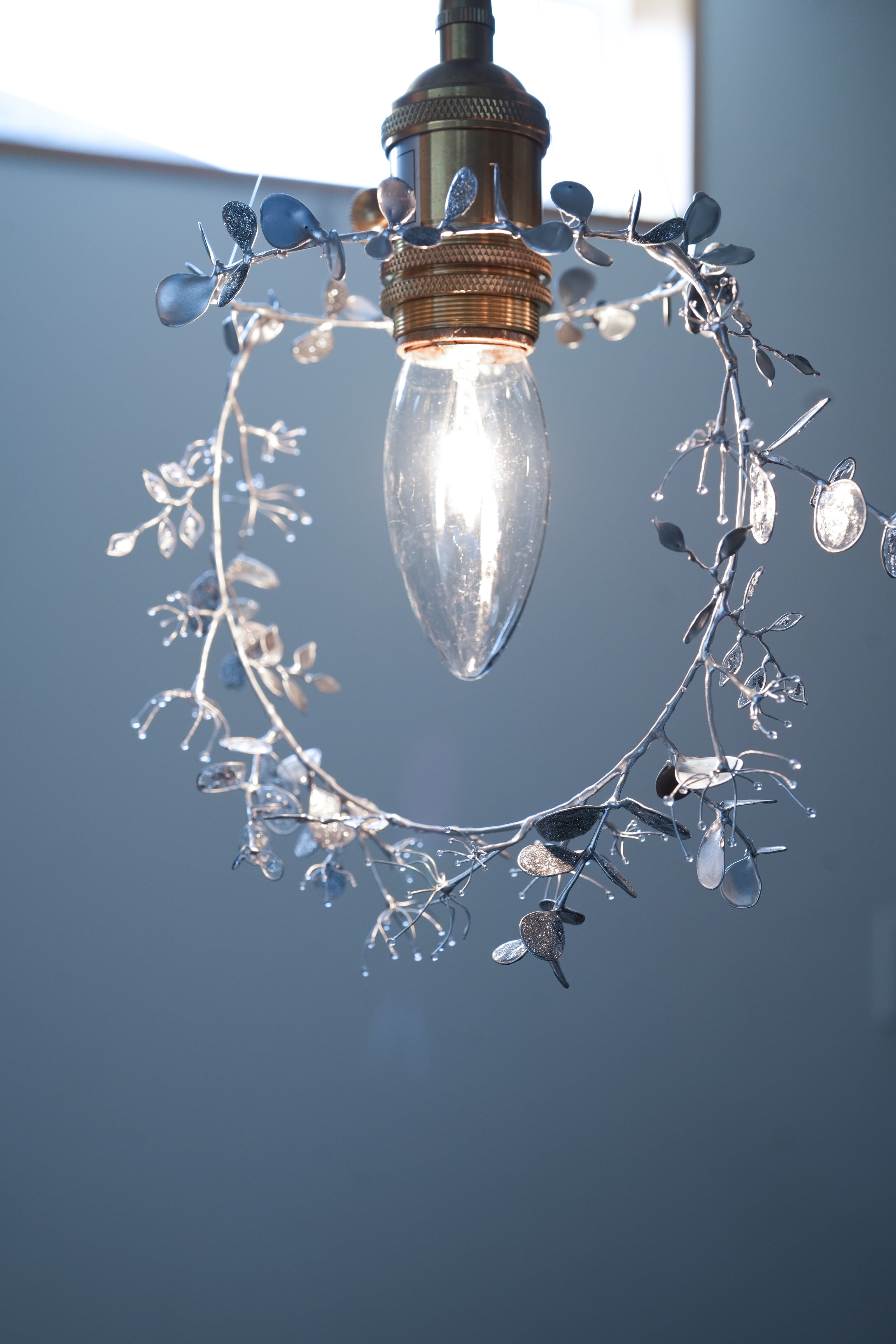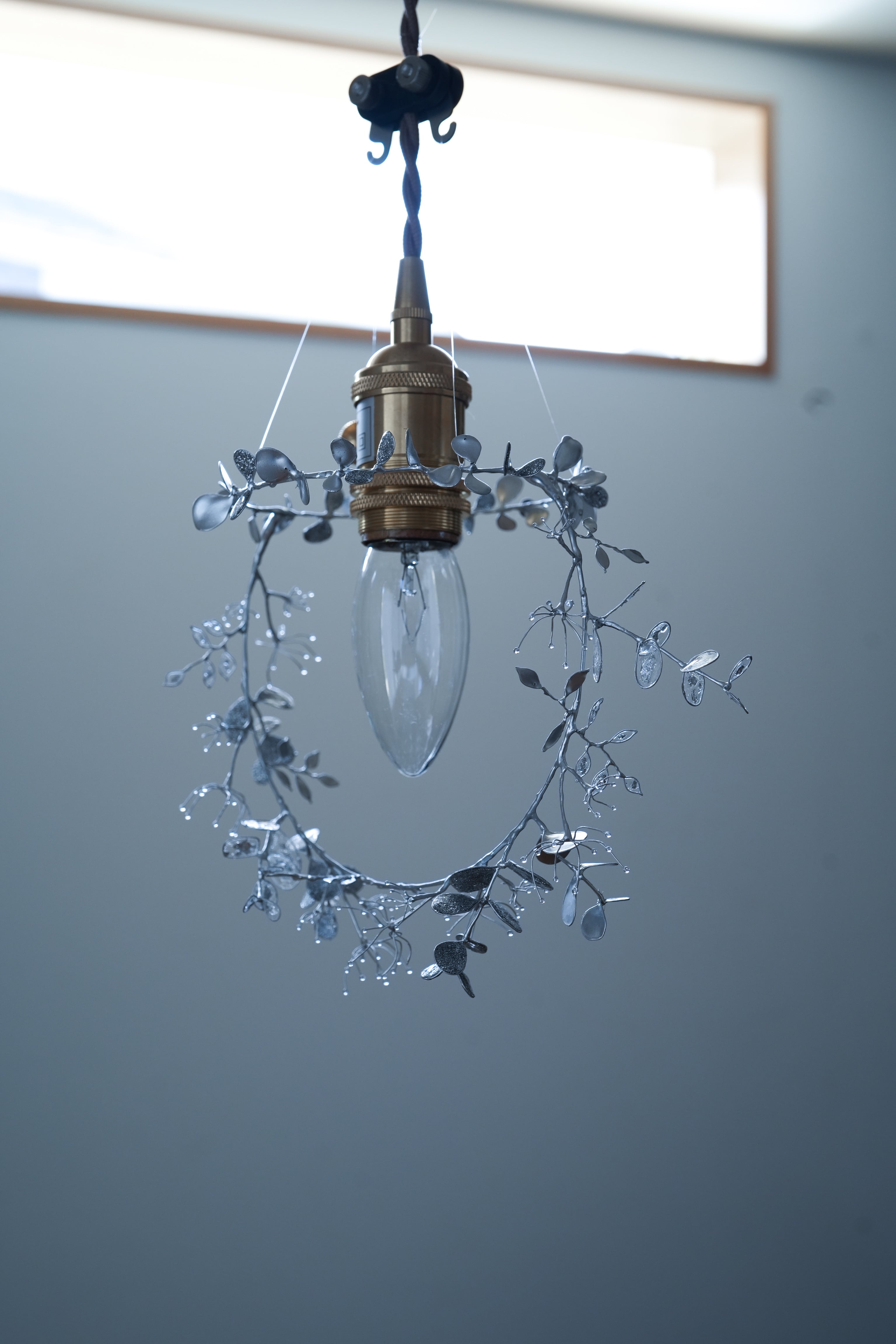 絵画を飾る額縁のように、ご自宅のシンプルな電球の周りに吊るすことで、新たなランプへと仕立てあげる作品です。