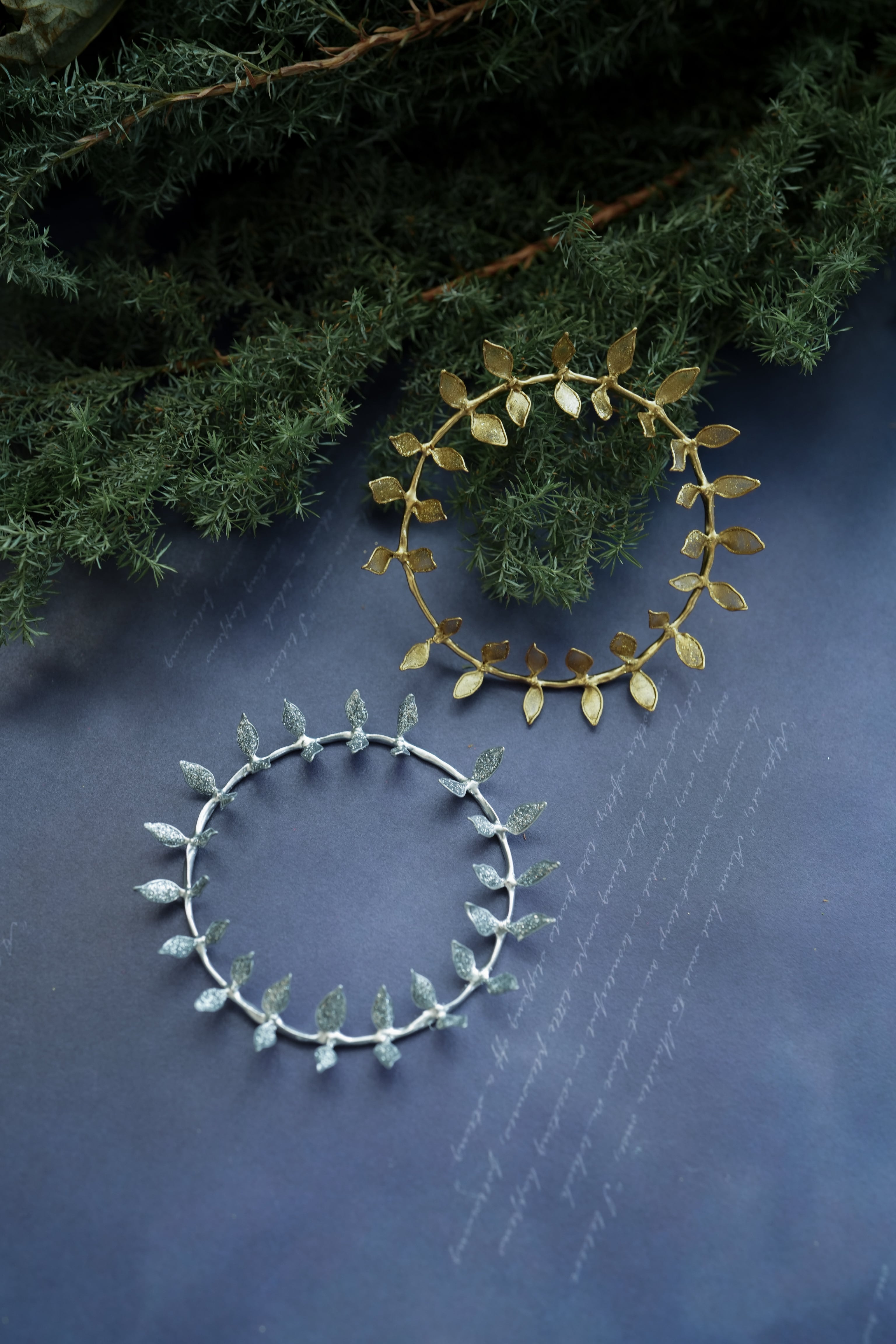 ★今年はS・Mサイズのツリーには、小さなワイヤーの葉っぱが連なったリースをお付けします。